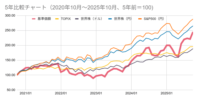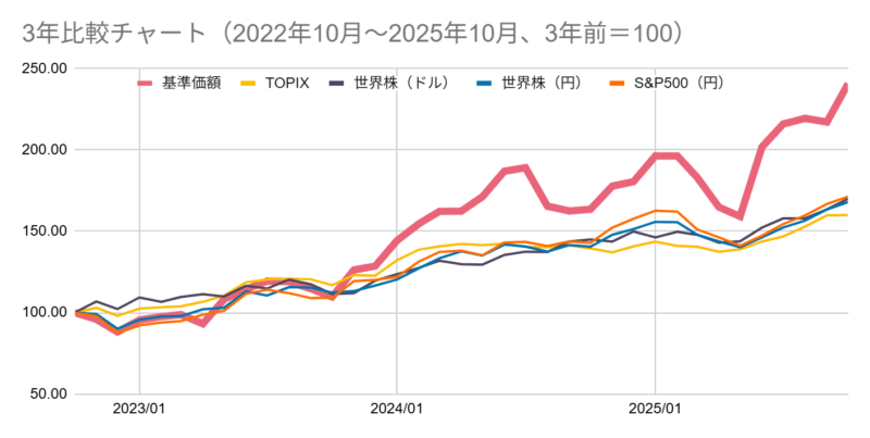 2020年、2021年に大きな伸びを見せています。この時期は米国株、特にテクノロジー関連企業が絶好調でした。