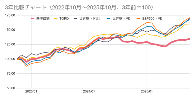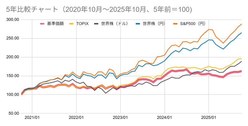 現状は過去5年、過去3年このファンドを保有していた場合と、日経平均のインデックスファンドを保有していた場合で結果は変わりません。