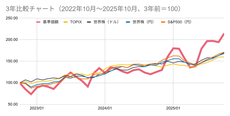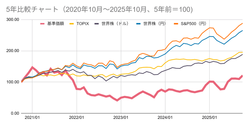 タイミングが悪かったとも言える時期ですが、ここまで大きくブレると長期的な資産形成に向いているかと言えばクエスチョンです。