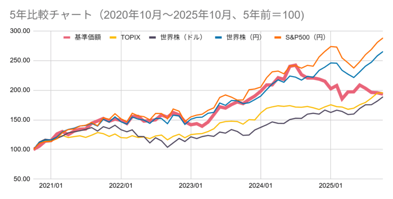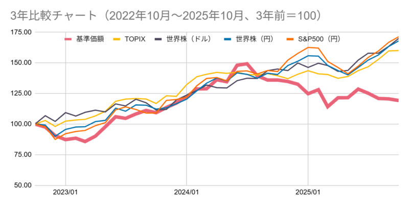 世界株=MSCIワールド・インデックス。円ベースは独自に計算。