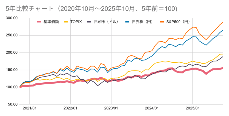 ここ数年は米国金利上昇の影響により、どうしても債券価格の下落を被っている様子ですが、それでも金利耐性のあるハイイールド社債などの配分によりしっかりと推移しています。